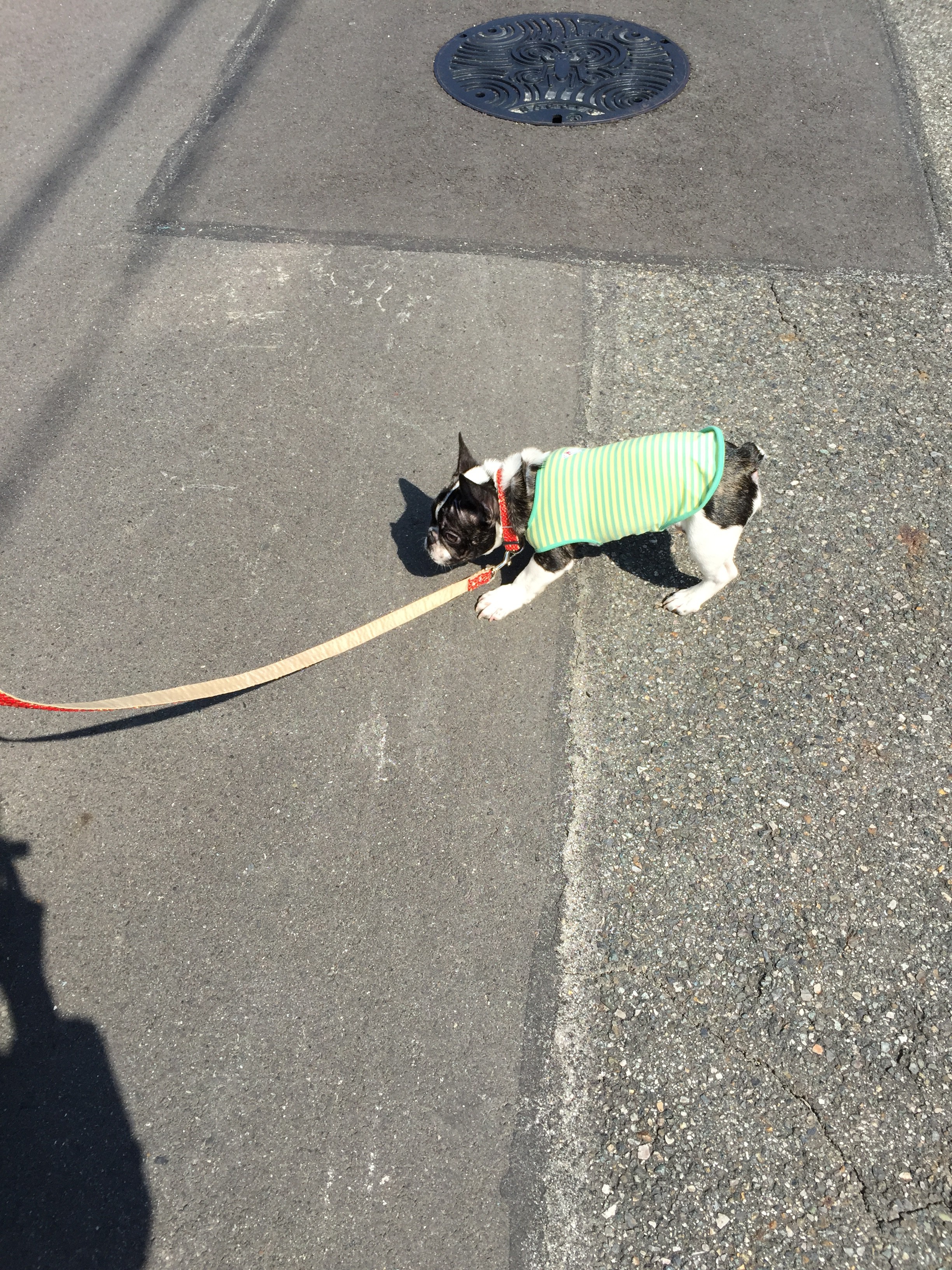 コウモリの耳に似ていることからバットイヤーと呼ばれる耳を持つフレンチブルドッグの愛犬にとって、はじめてお散歩をした日ともなりました(*^_^*)