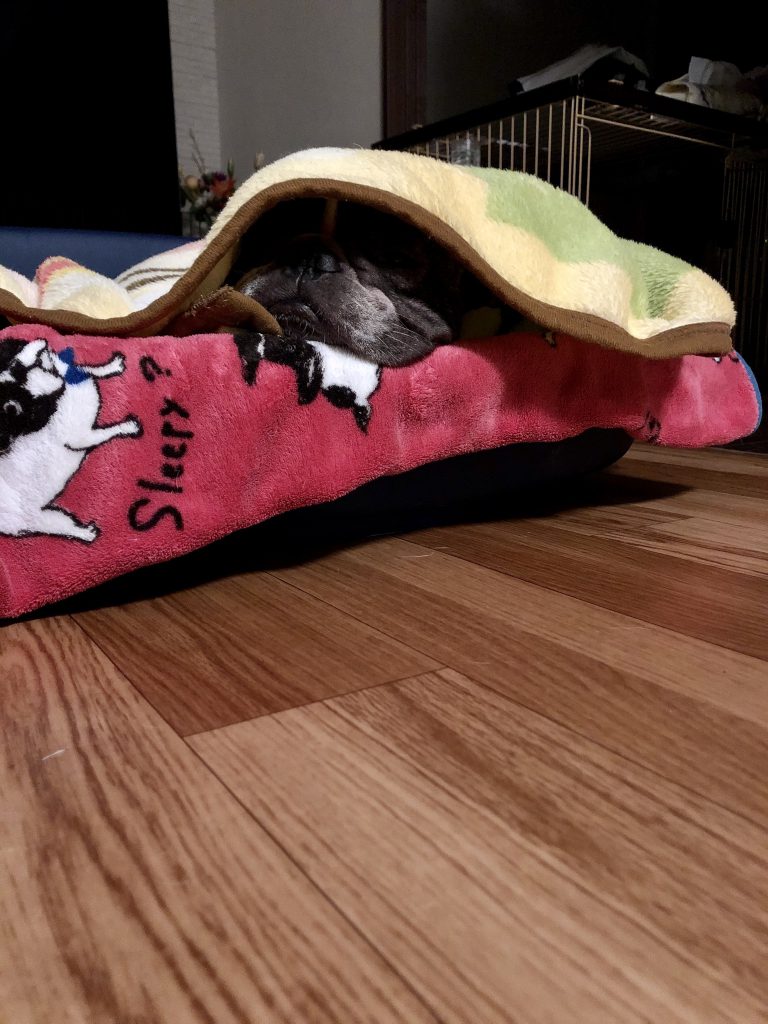 たろ:「うん。もう布団から出られないや🐾 」