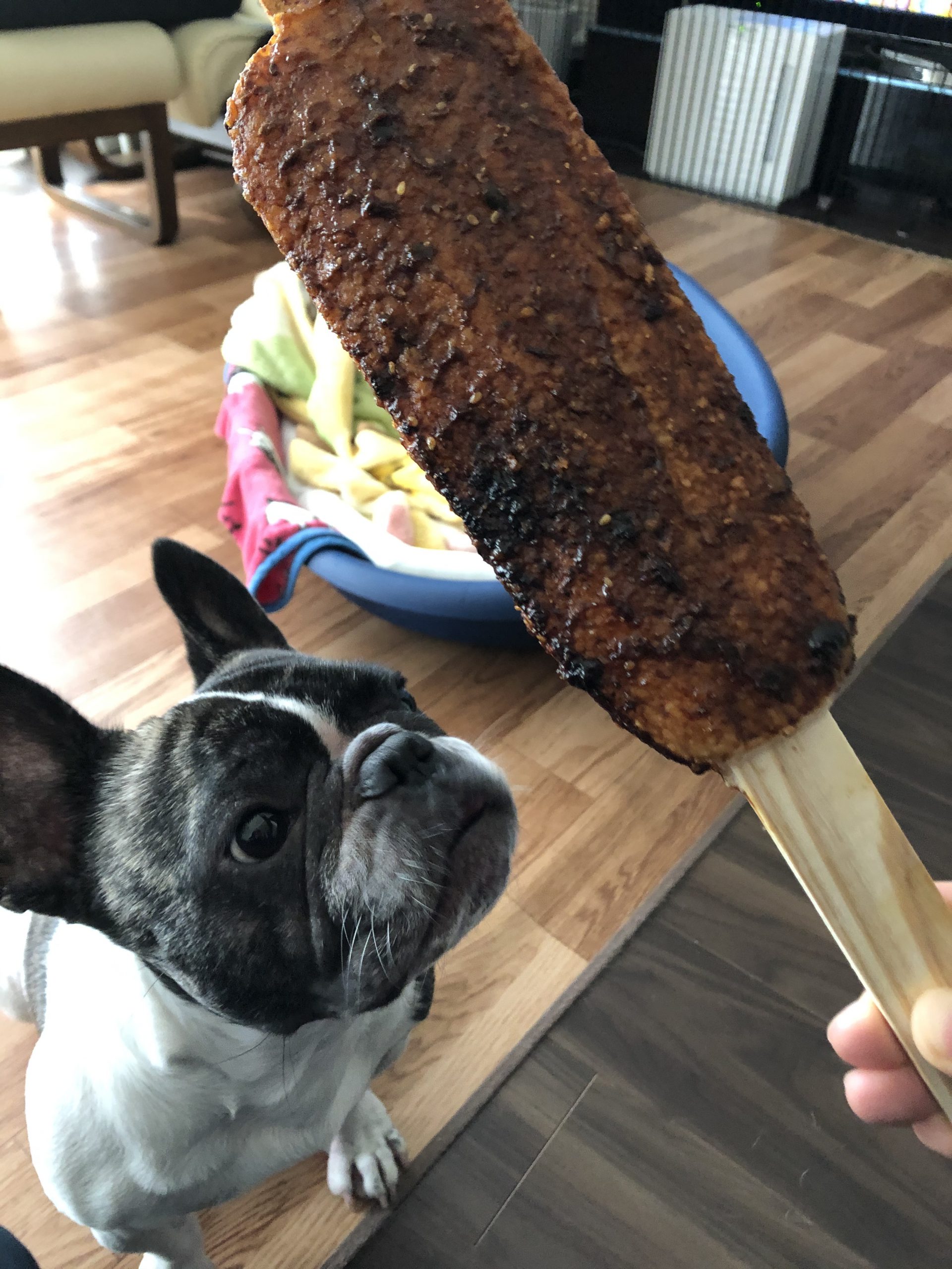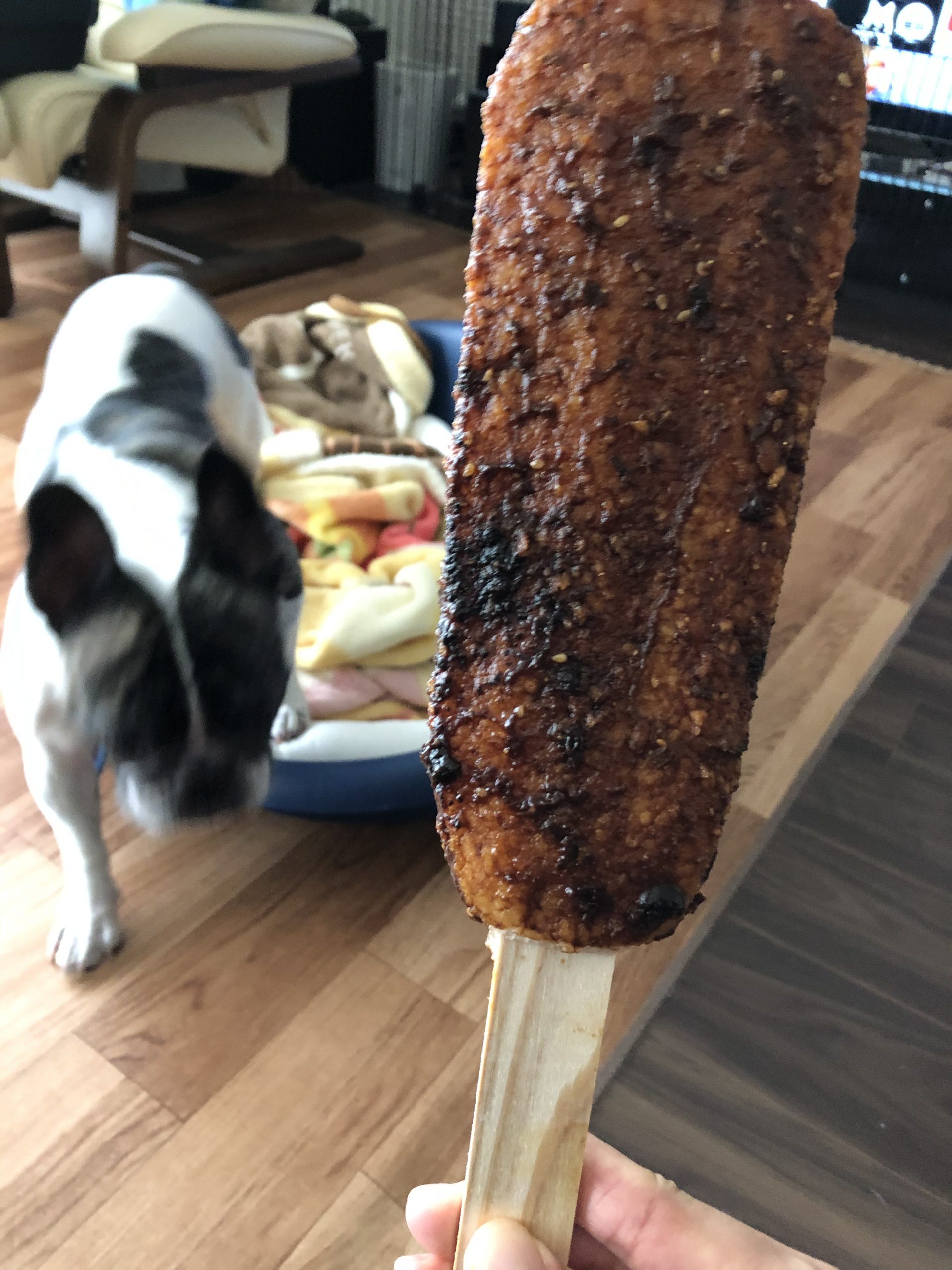 (飼い主、今のうちおやつタイムに五平餅)