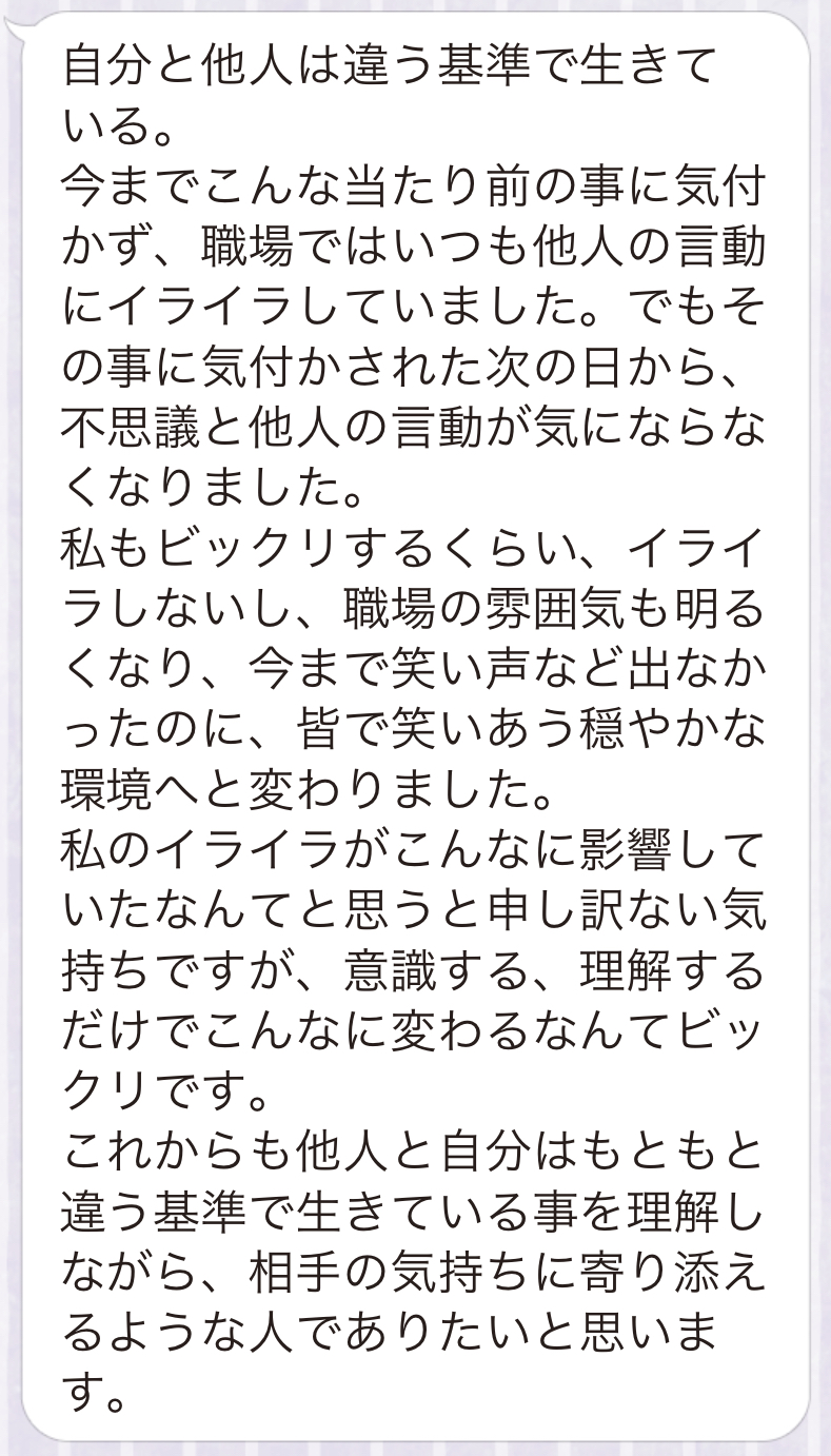 こんな素晴らしい気づきをされたクライアントSさんからのLINEです。
